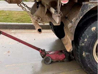 臥式千斤頂是專業(yè)的換胎工具,使用時(shí)將其頂在車底就可以輕松將車輛頂升起來,輪胎全部離開地面后就可以進(jìn)行換胎。有了它的助力泥頭車很快就完成了換胎作業(yè)順利上路。